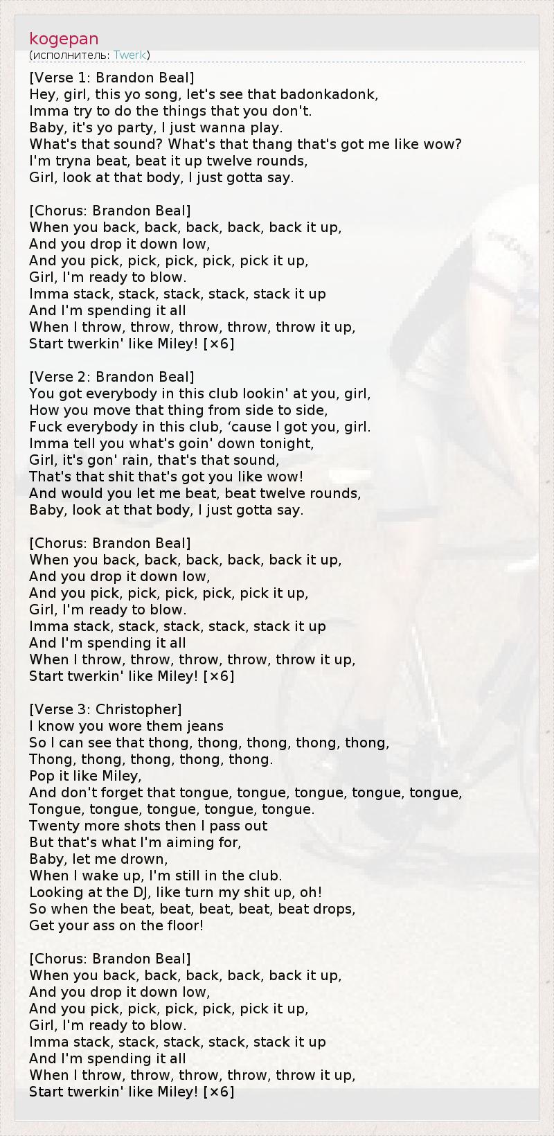 Hey, girl, this yo song, let's see that badonkadonk,