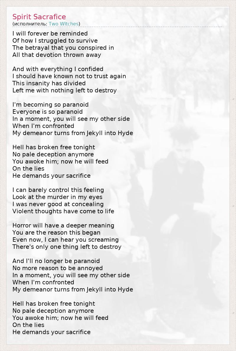А как ты думаешь, о чем песня "Spirit Sacrafice" ?