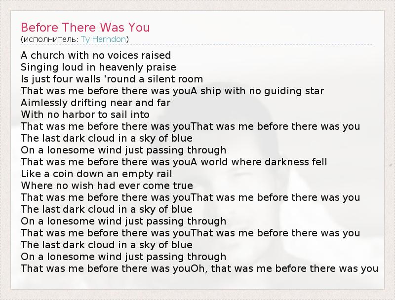 А как ты думаешь, о чем песня "Before There Was You" ?