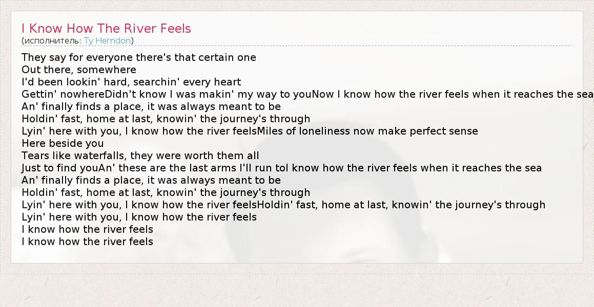 А как ты думаешь, о чем песня "I Know How The River Feels" ?