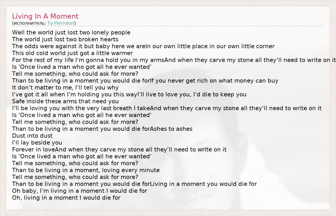 А как ты думаешь, о чем песня "Living In A Moment" ?