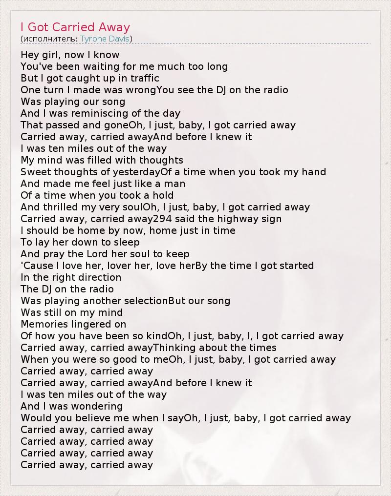 А как ты думаешь, о чем песня "I Got Carried Away" ?