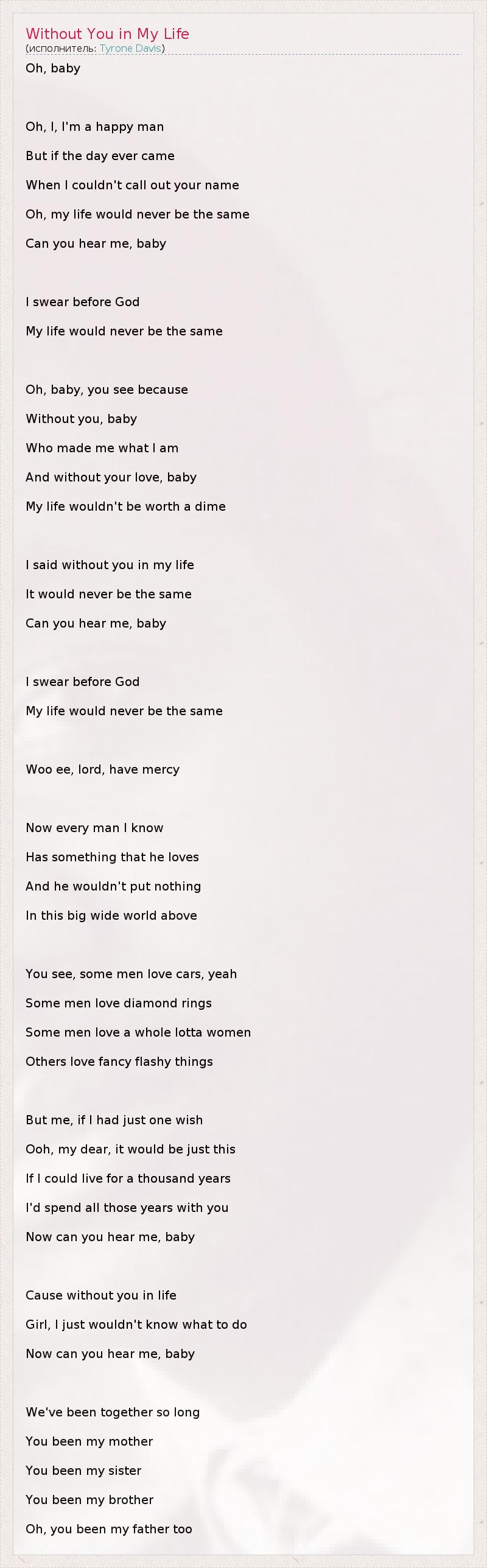 А как ты думаешь, о чем песня "Without You in My Life" ?
