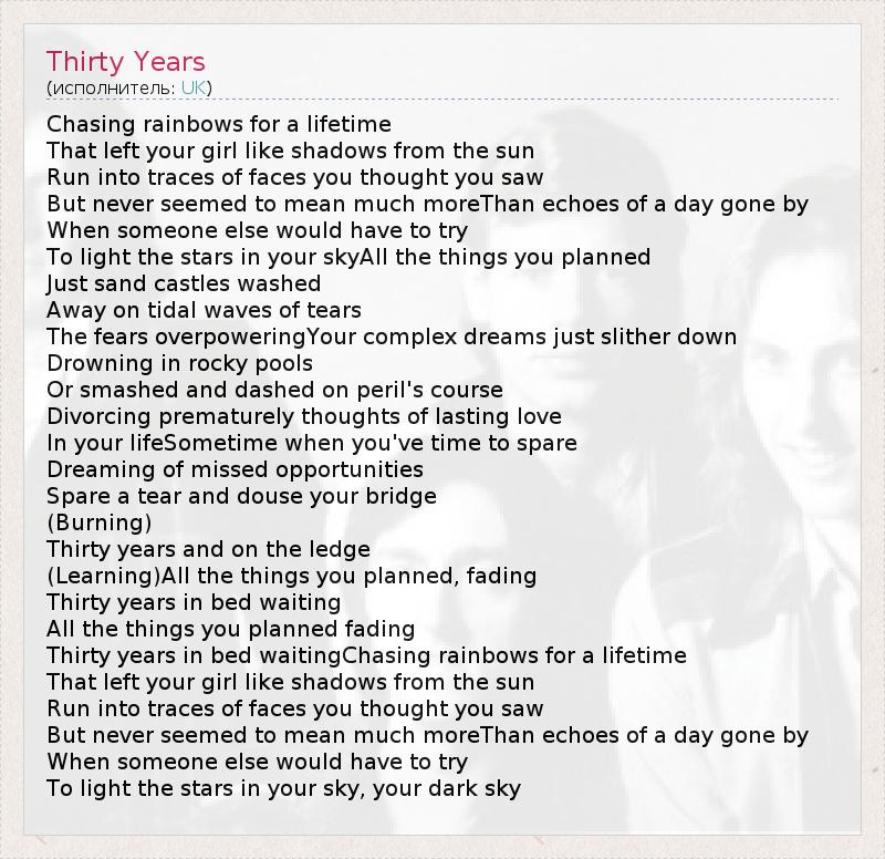 А как ты думаешь, о чем песня "Thirty Years" ?