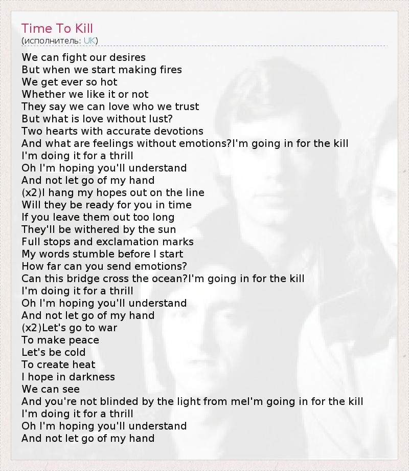 А как ты думаешь, о чем песня "Time To Kill" ?