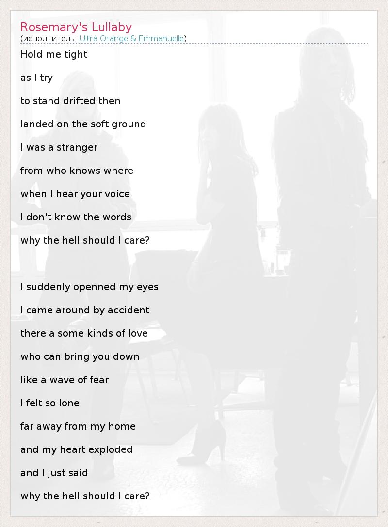 А как ты думаешь, о чем песня "Rosemary's Lullaby" ?