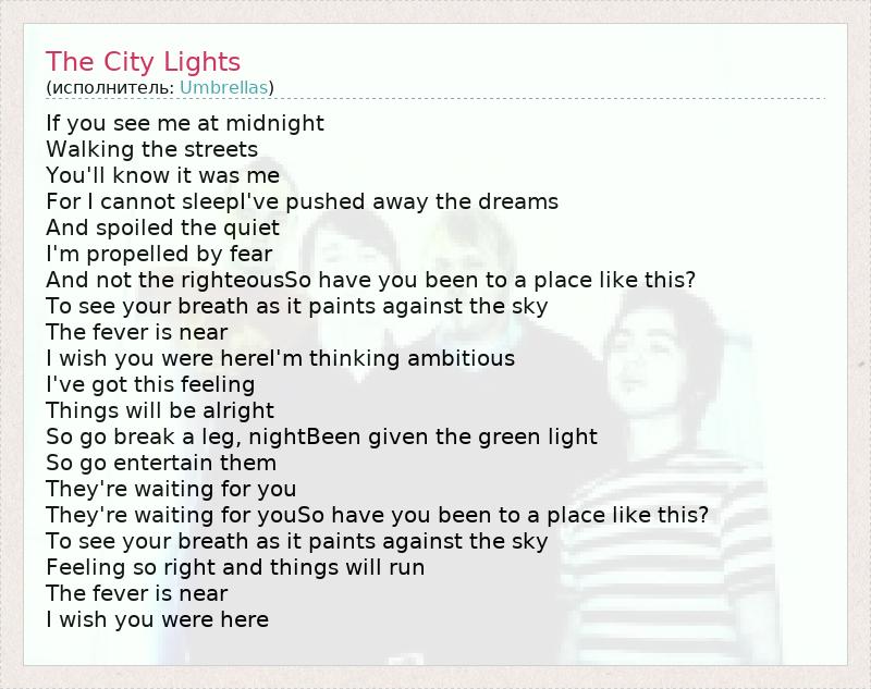 Это интересно:http://www.myspace.com/umbrellasAfter issuing two albums and an EP of largely acoustic work under the moniker the Lyndsay Diaries, Scott Windsor further embraced his indie pop side with a new project, Umbrellas. Collaborating with various studio musicians – including Chad Copelin, Nathan Price, and Eric Arndt – Umbrellas debuted in spring 2005 with a self-titled collection of refreshing and dynamic pop music. Produced by Ed Rose, the album was issued through The Militia Group, the same label Windsor worked with for the Lyndsay Diaries. Heavy touring followed in support (with different backing members than on the... продолжение