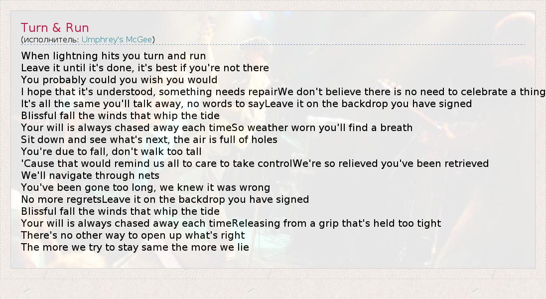 А как ты думаешь, о чем песня "Turn & Run" ?