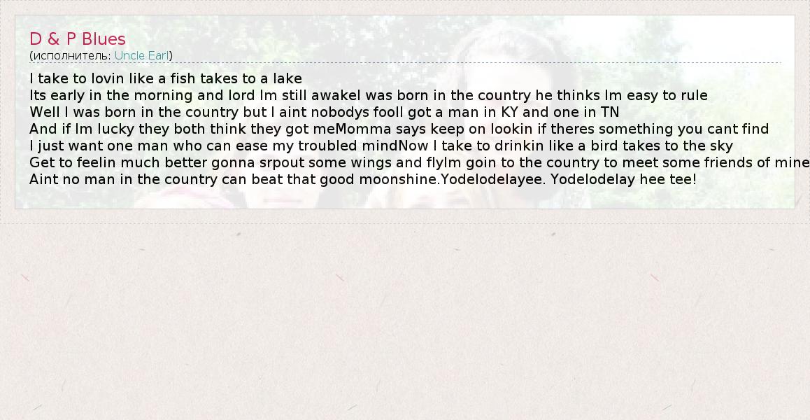 А как ты думаешь, о чем песня "D & P Blues" ?