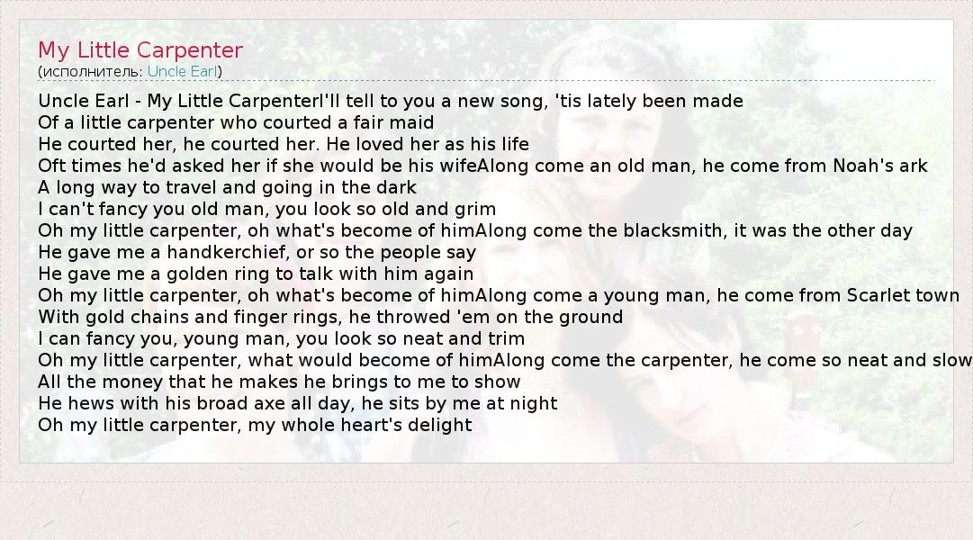 Uncle Earl - My Little CarpenterI'll tell to you a new song, 'tis lately been made