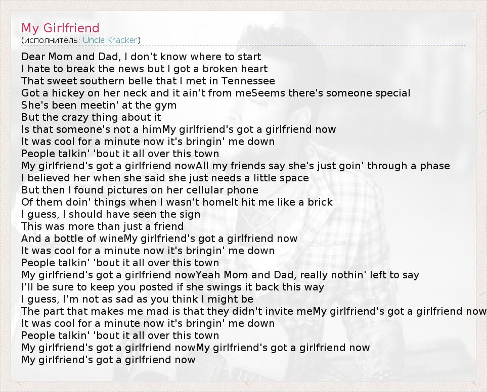 Is that someone's not a himMy girlfriend's got a girlfriend now