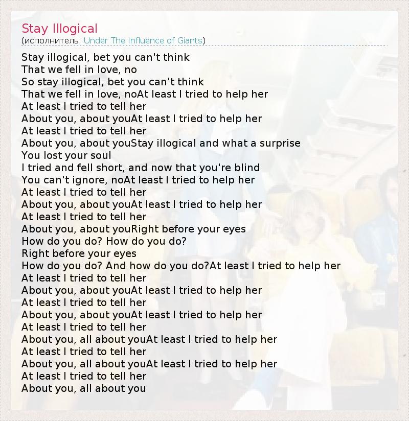 А как ты думаешь, о чем песня "Stay Illogical" ?