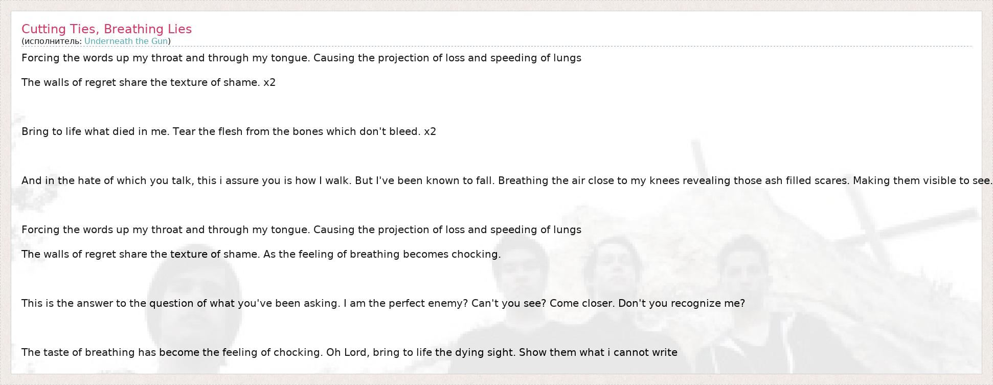 ГлавнаяИсполнителиUnderneath the GunCutting Ties, Breathing Lies