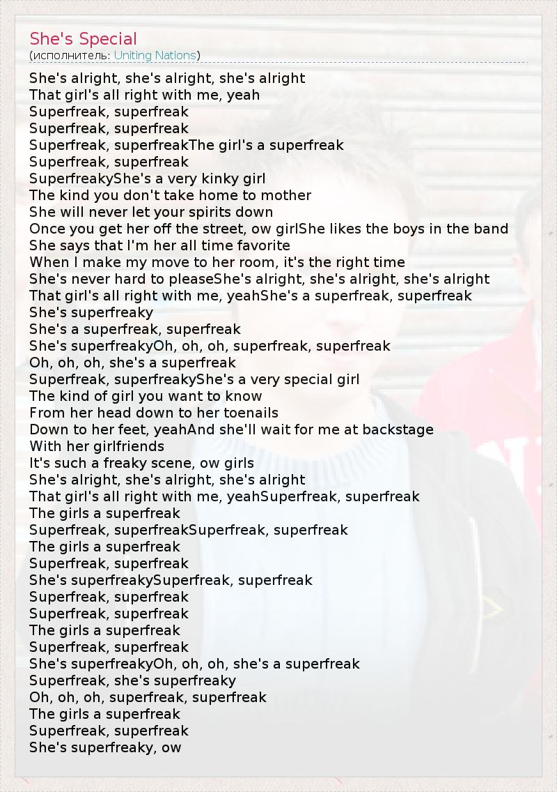 She's superfreakyOh, oh, oh, superfreak, superfreak