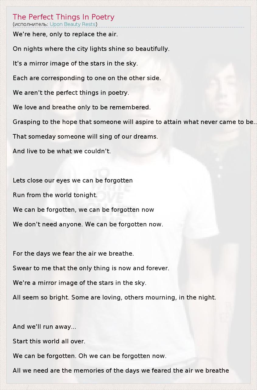 А как ты думаешь, о чем песня "The Perfect Things In Poetry" ?