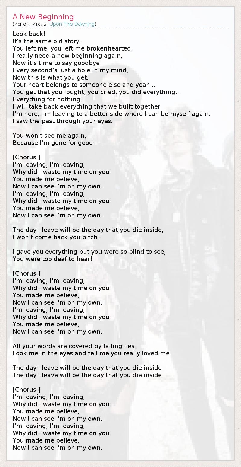 А как ты думаешь, о чем песня "A New Beginning" ?