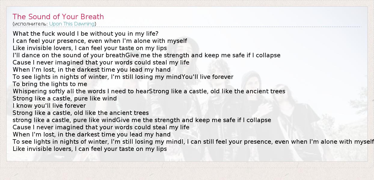 А как ты думаешь, о чем песня "The Sound of Your Breath" ?