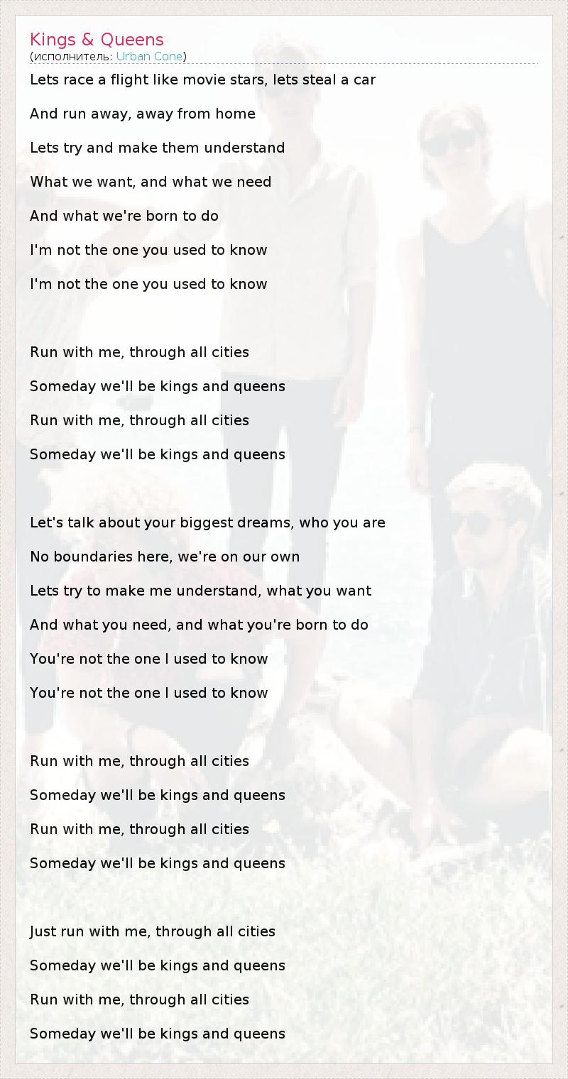 А как ты думаешь, о чем песня "Kings & Queens" ?