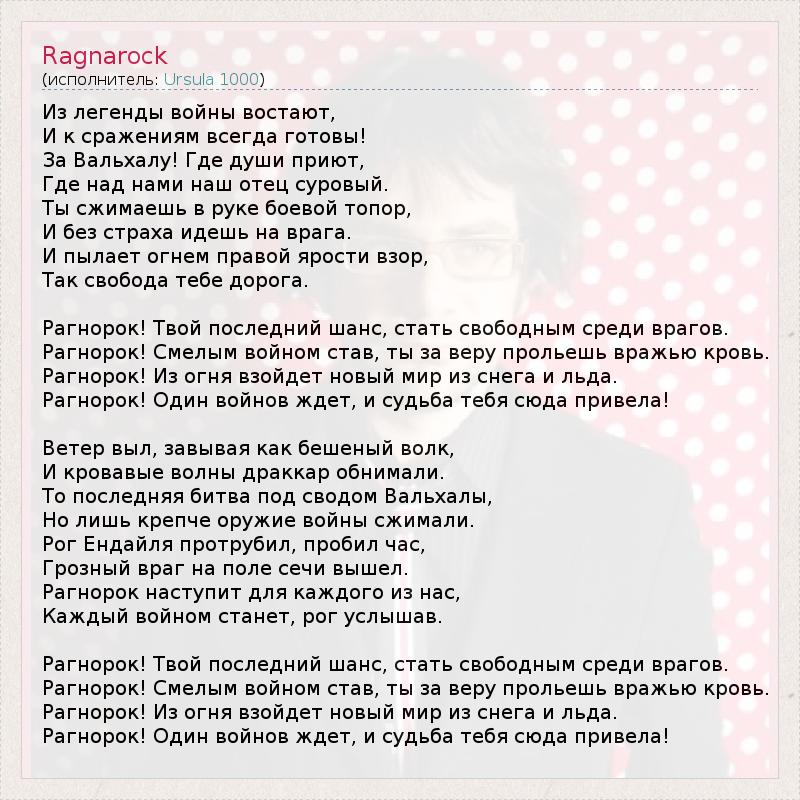 Рагнорок! Смелым войном став, ты за веру прольешь вражью кровь.