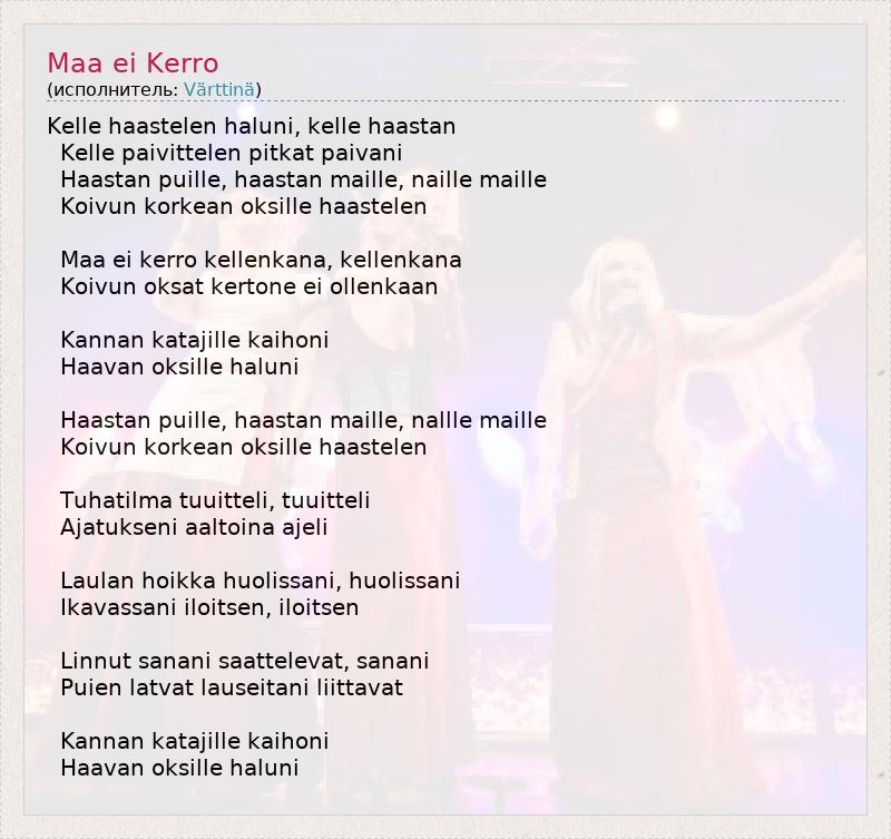 А как ты думаешь, о чем песня "Maa ei Kerro" ?