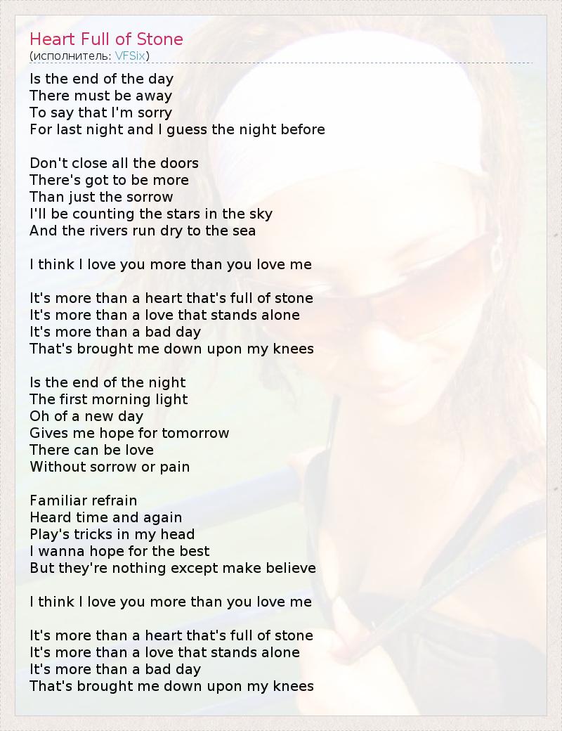А как ты думаешь, о чем песня "Heart Full of Stone" ?