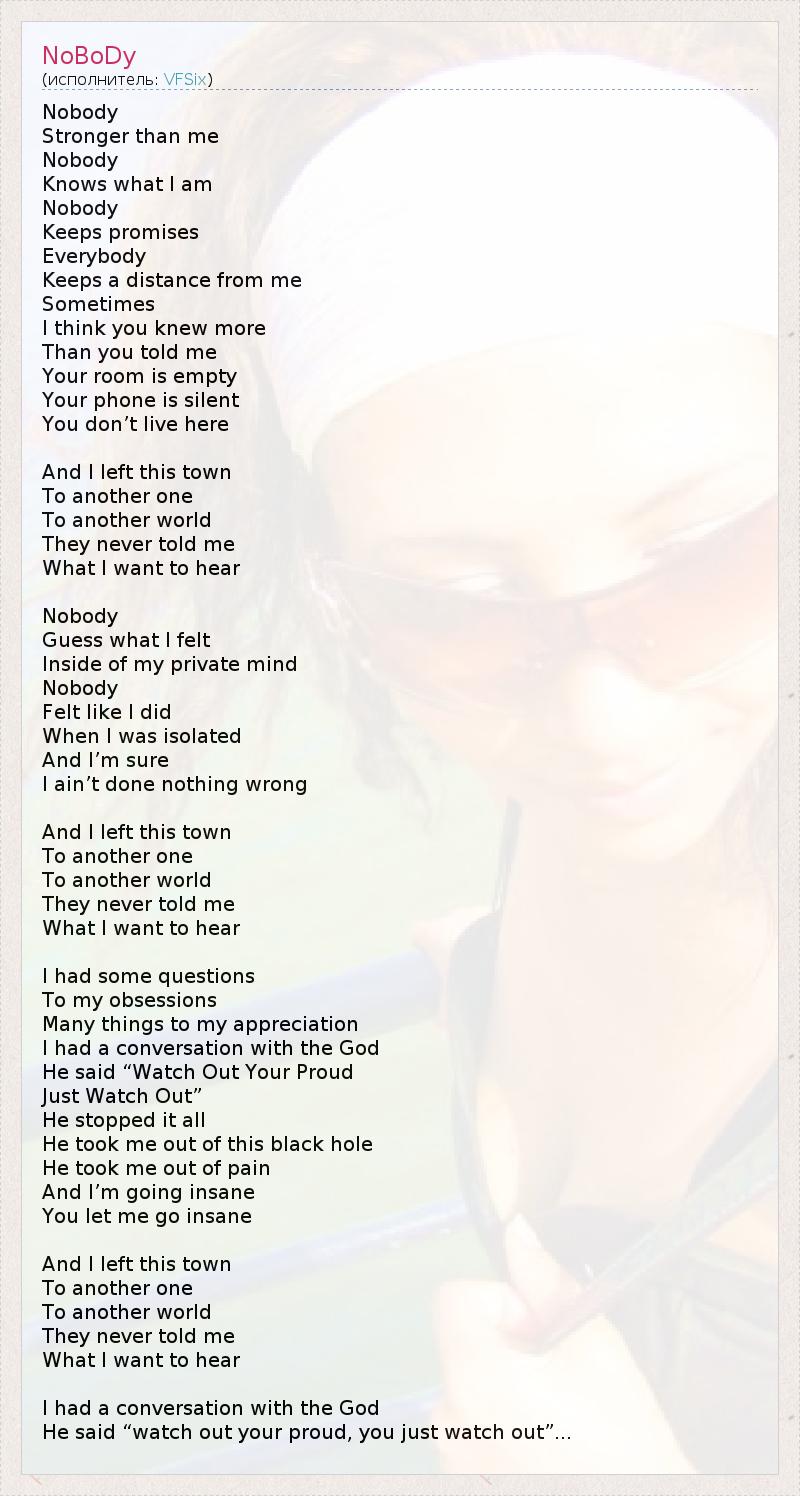 А как ты думаешь, о чем песня "NoBoDy" ?
