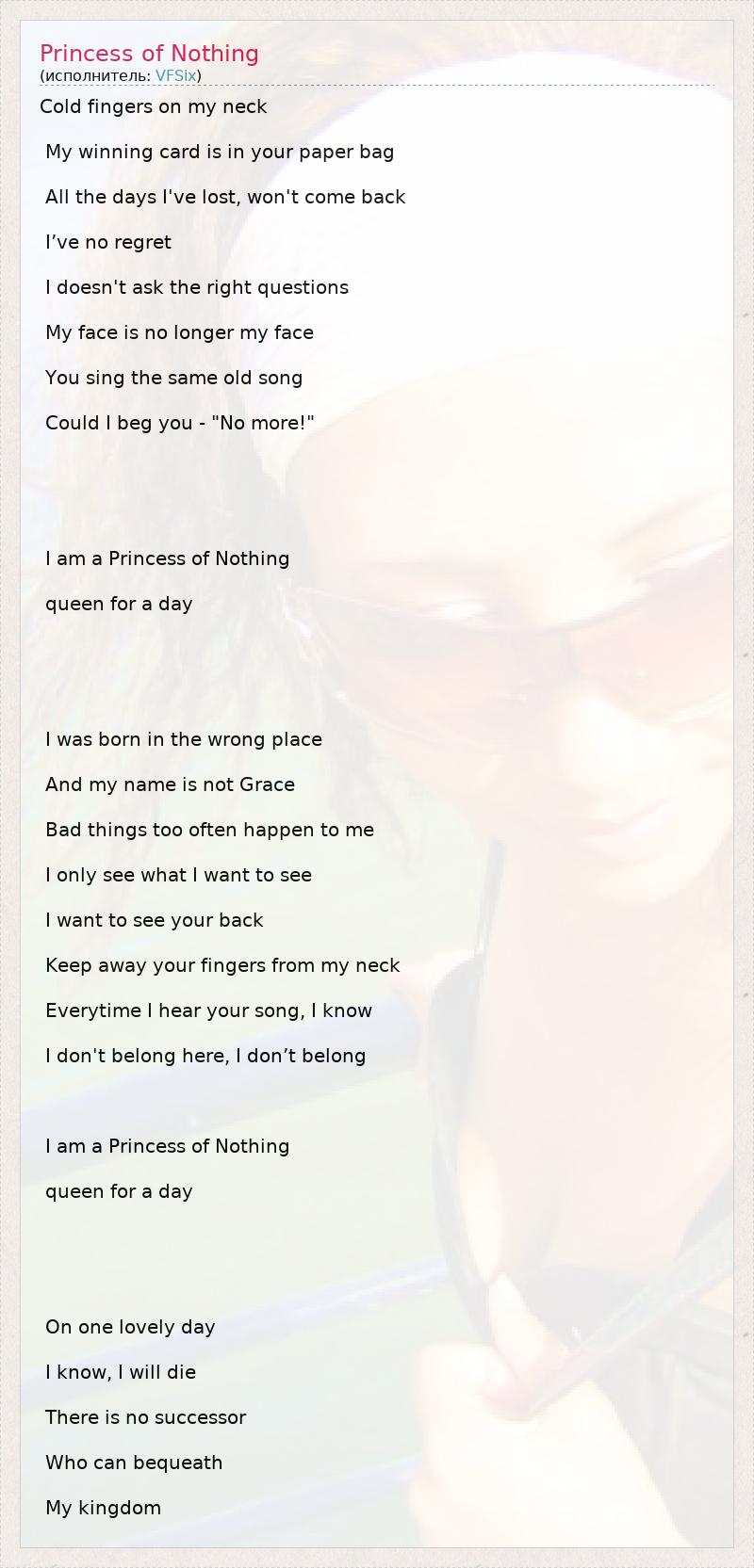 ГлавнаяИсполнителиVFSixPrincess of Nothing