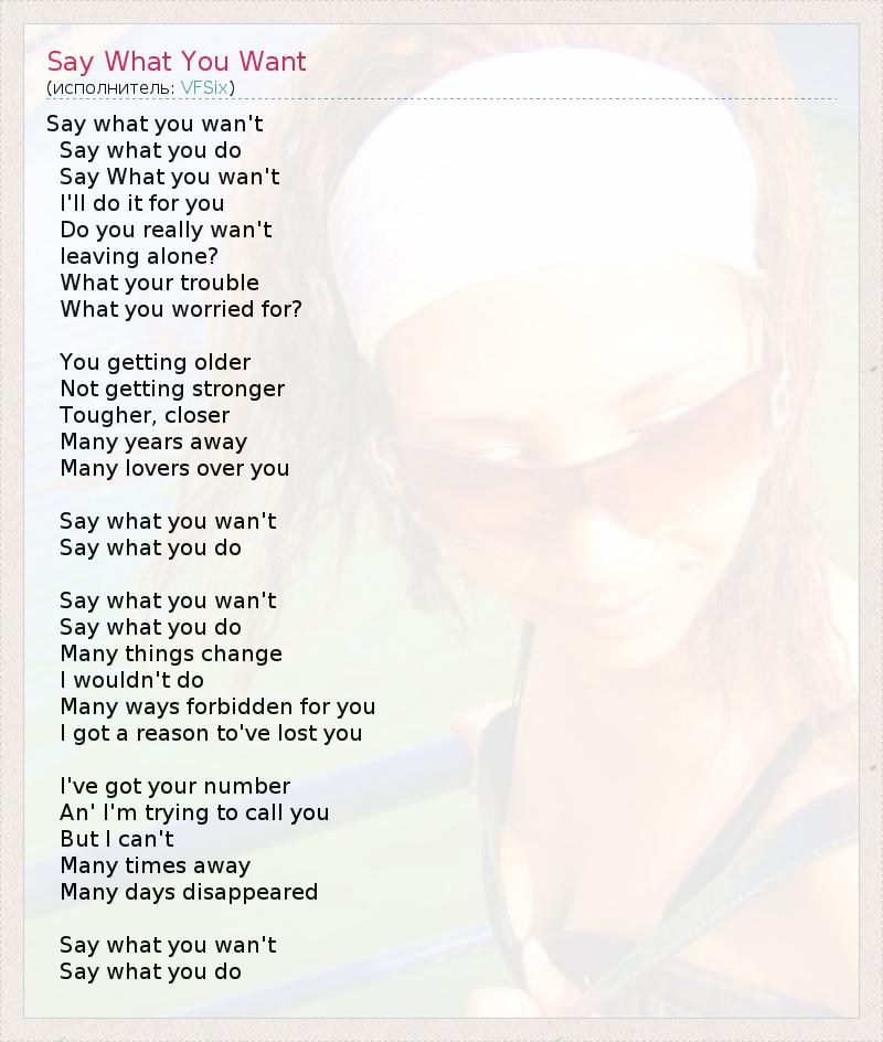 А как ты думаешь, о чем песня "Say What You Want" ?