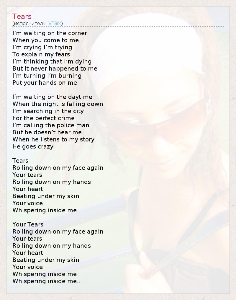 «Мы даже не предполагали, что наша музыка будет издаваться в России, — говорят участники VFSix, — все, что мы делали — мы делали исключительно для себя: для того, чтобы выразить свои эмоции, поделиться переживаниями, настроением, депрессиями, влечениями, состоянием… Три года мы готовили альбом, но, если и думали, что он будет выпущен, то только на Западе. Мы очень рады, что ситуация изменилась, и наше творчество стало интересно нашим соотечественникам!»
