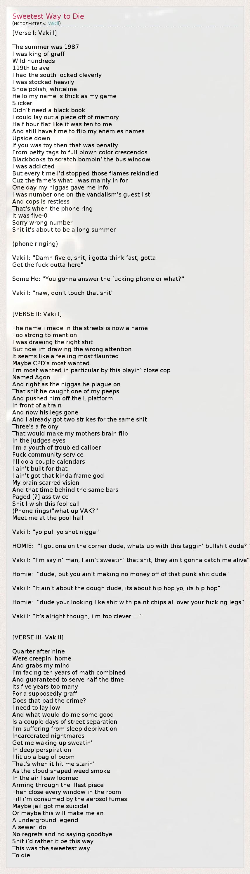 А как ты думаешь, о чем песня "Sweetest Way to Die" ?