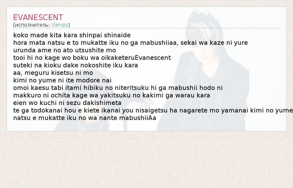 А как ты думаешь, о чем песня "EVANESCENT" ?