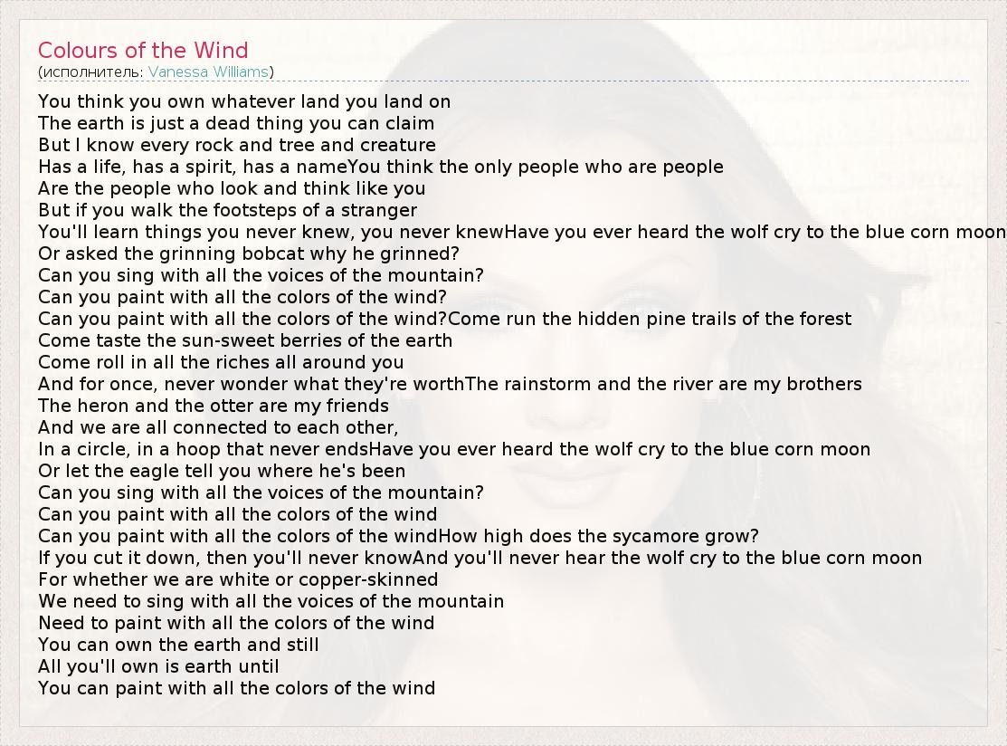 А как ты думаешь, о чем песня "Colours of the Wind" ?