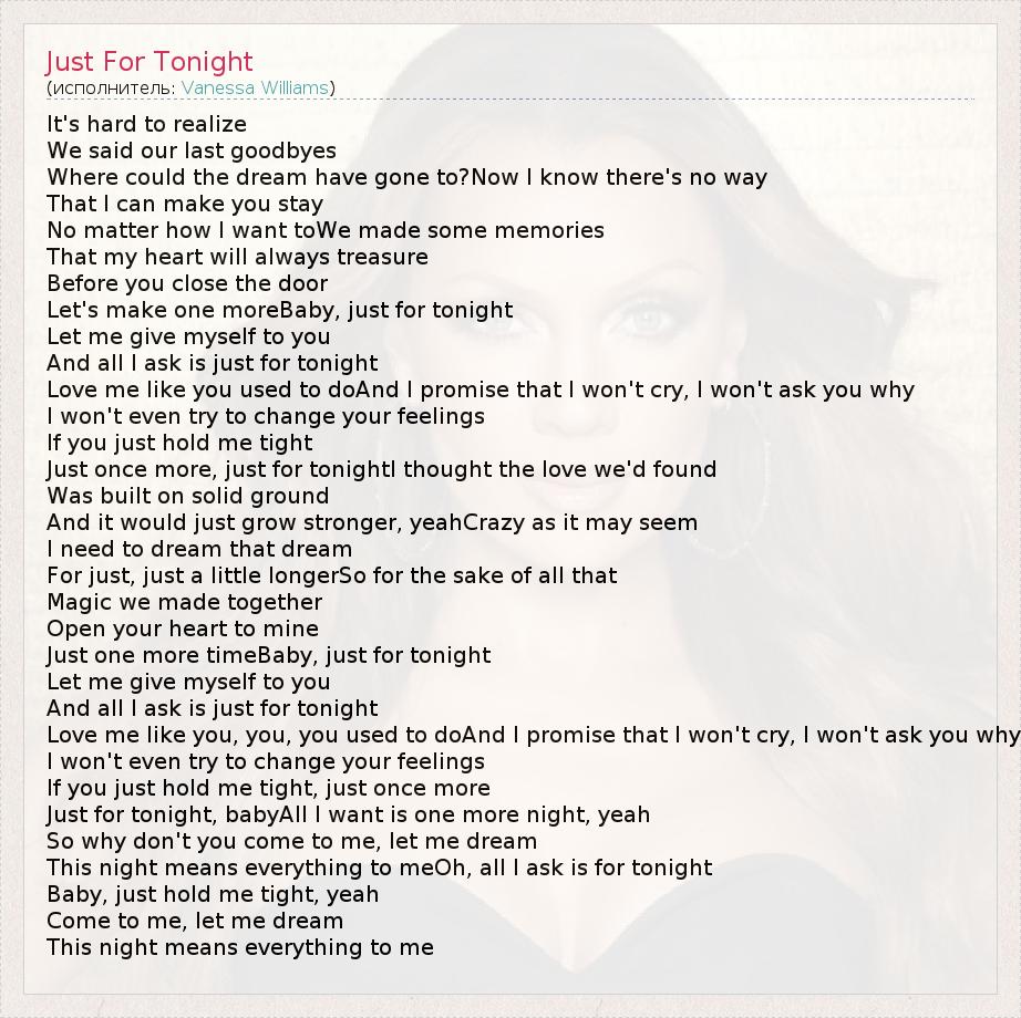 А как ты думаешь, о чем песня "Just For Tonight" ?
