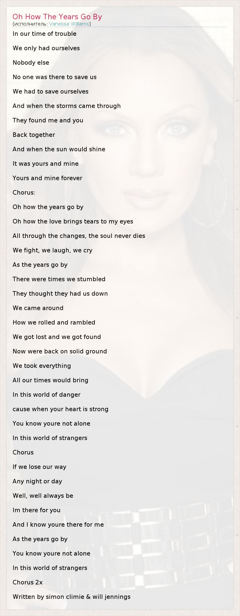 А как ты думаешь, о чем песня "Oh How The Years Go By" ?