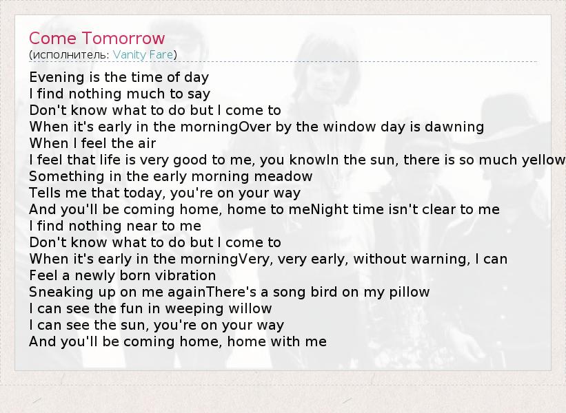 А как ты думаешь, о чем песня "Come Tomorrow" ?