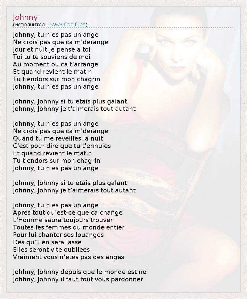 Джонни, Джонни, я бы тебя любила по-прежнему.