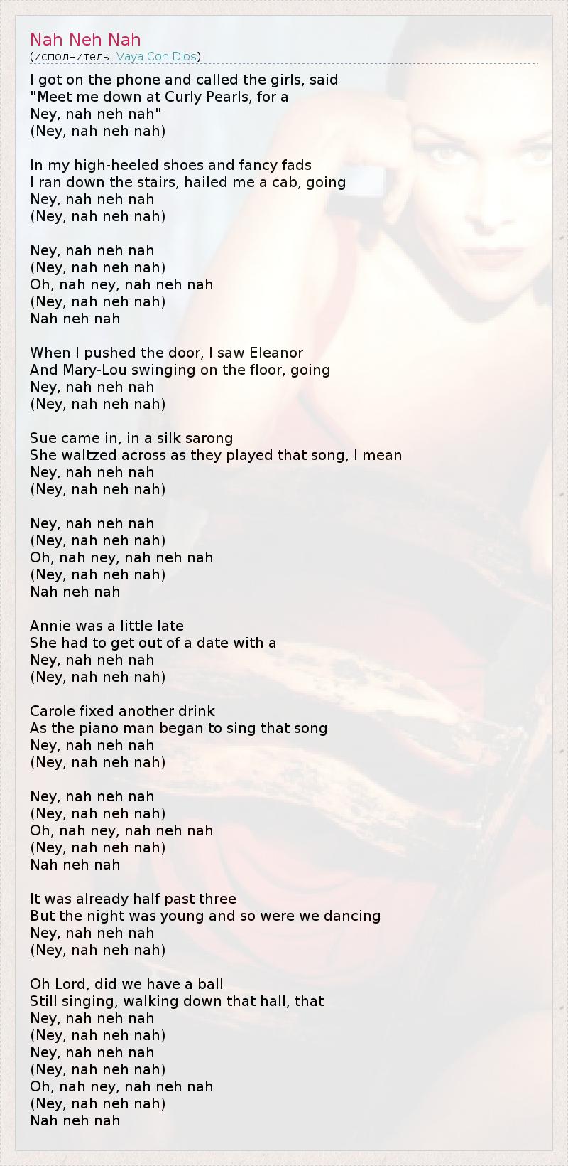 А как ты думаешь, о чем песня "Nah Neh Nah" ?