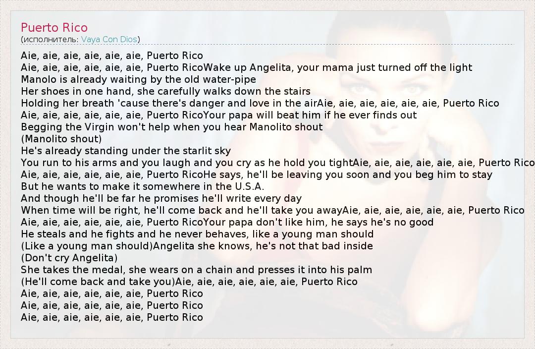 А как ты думаешь, о чем песня "Puerto Rico" ?