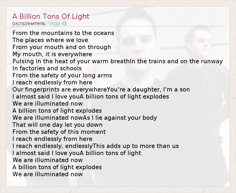 А как ты думаешь, о чем песня "A Billion Tons Of Light" ?