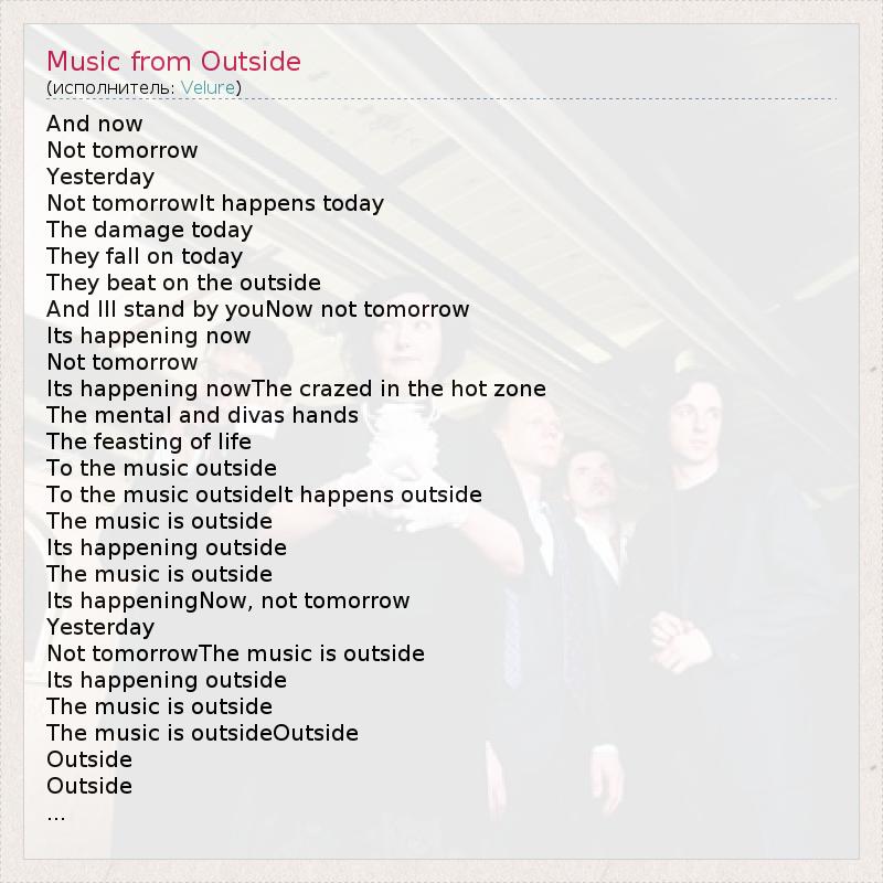 А как ты думаешь, о чем песня "Music from Outside" ?