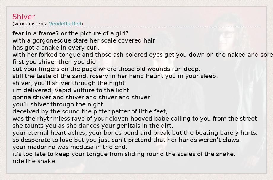 it's too late to keep your tongue from sliding round the scales of the snake.