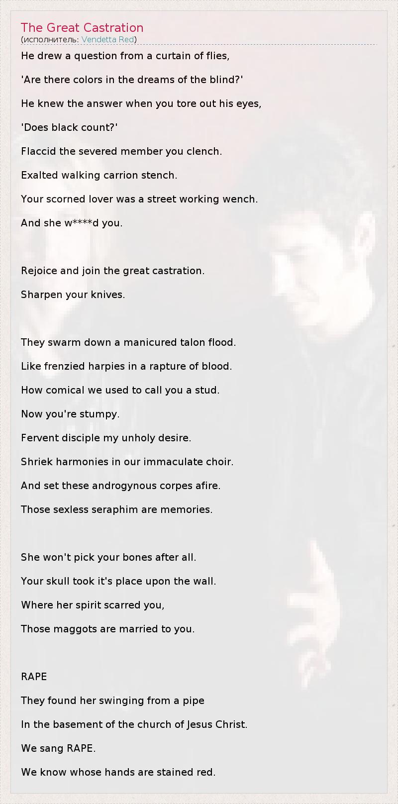 А как ты думаешь, о чем песня "The Great Castration" ?