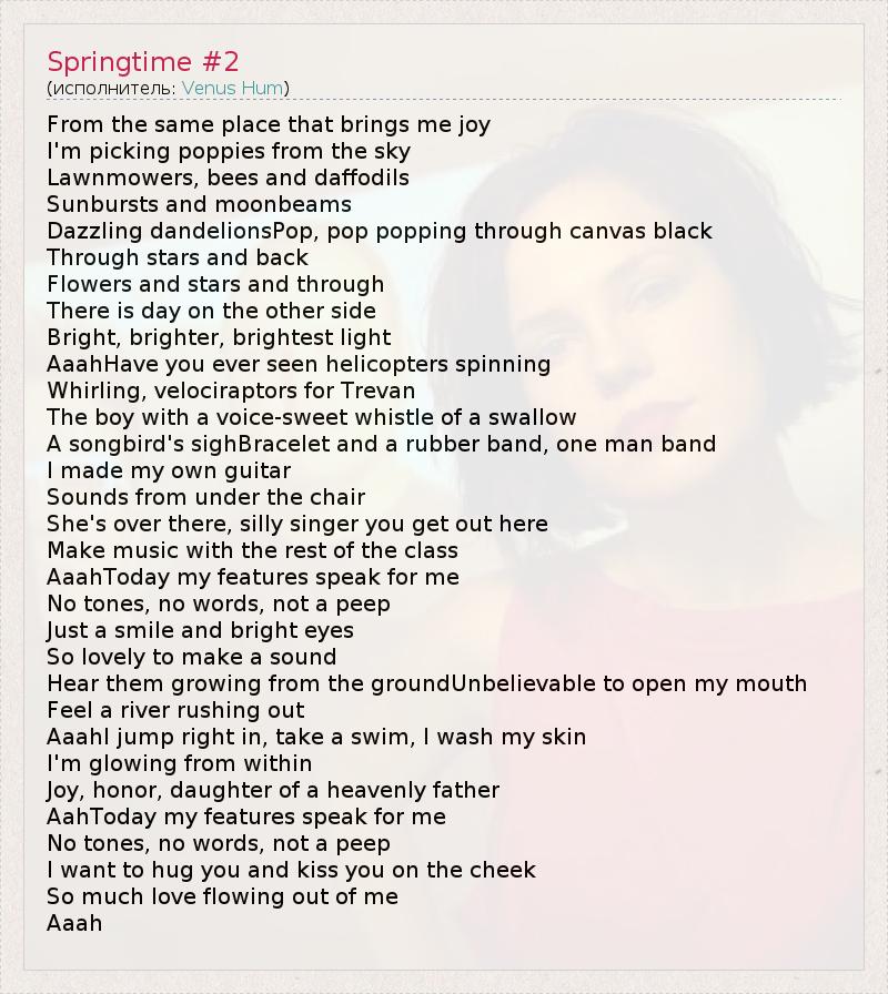 А как ты думаешь, о чем песня "Springtime #2" ?
