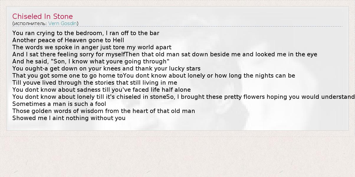 А как ты думаешь, о чем песня "Chiseled In Stone" ?