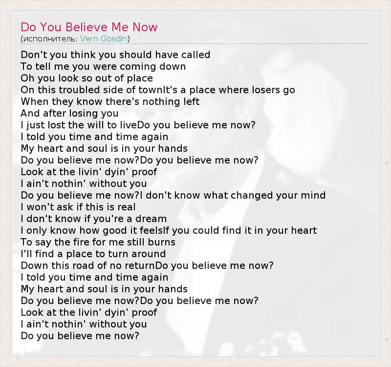 А как ты думаешь, о чем песня "Do You Believe Me Now" ?
