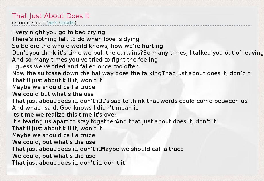 А как ты думаешь, о чем песня "That Just About Does It" ?