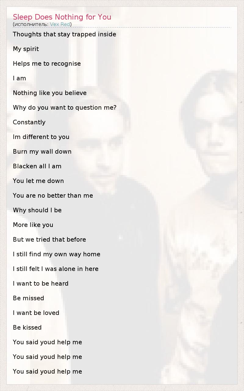 А как ты думаешь, о чем песня "Sleep Does Nothing for You" ?
