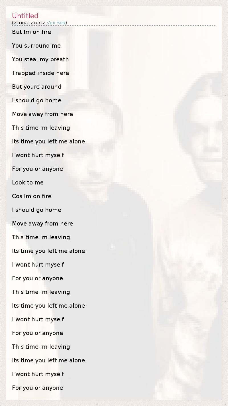 Это интересно:Состав:* Терри Эбботт - Вокал, Гитара (1999-2002).* Энтони "Энт" Форбс - Гитара, Клавишные (1995-2002).* Ник Голдинг - Гитара, Бас-гитара (1995-2002).* Кит Ламберт - Бас-гитара, Клавишные, Программирование (1995-2002).* Бен Калверт - Ударные (1995-2002).Бывшие участники:* Син Бэкингхэм - Вокал (1995-1998).* Эшли "Эш" Соэн - Ударные (2001-2002).Vex Red - Английская рок-группа, квинтет основанный в 1995 году... продолжение