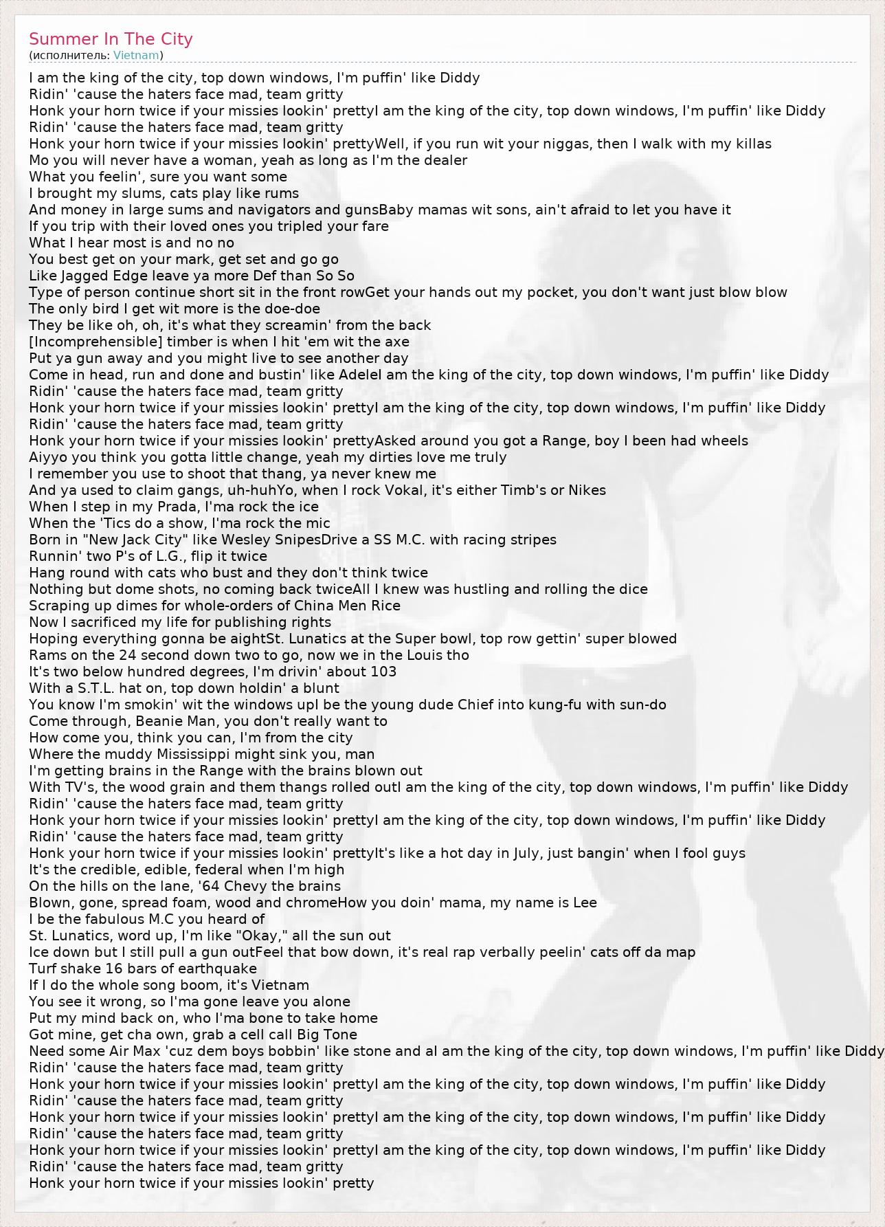 А как ты думаешь, о чем песня "Summer In The City" ?