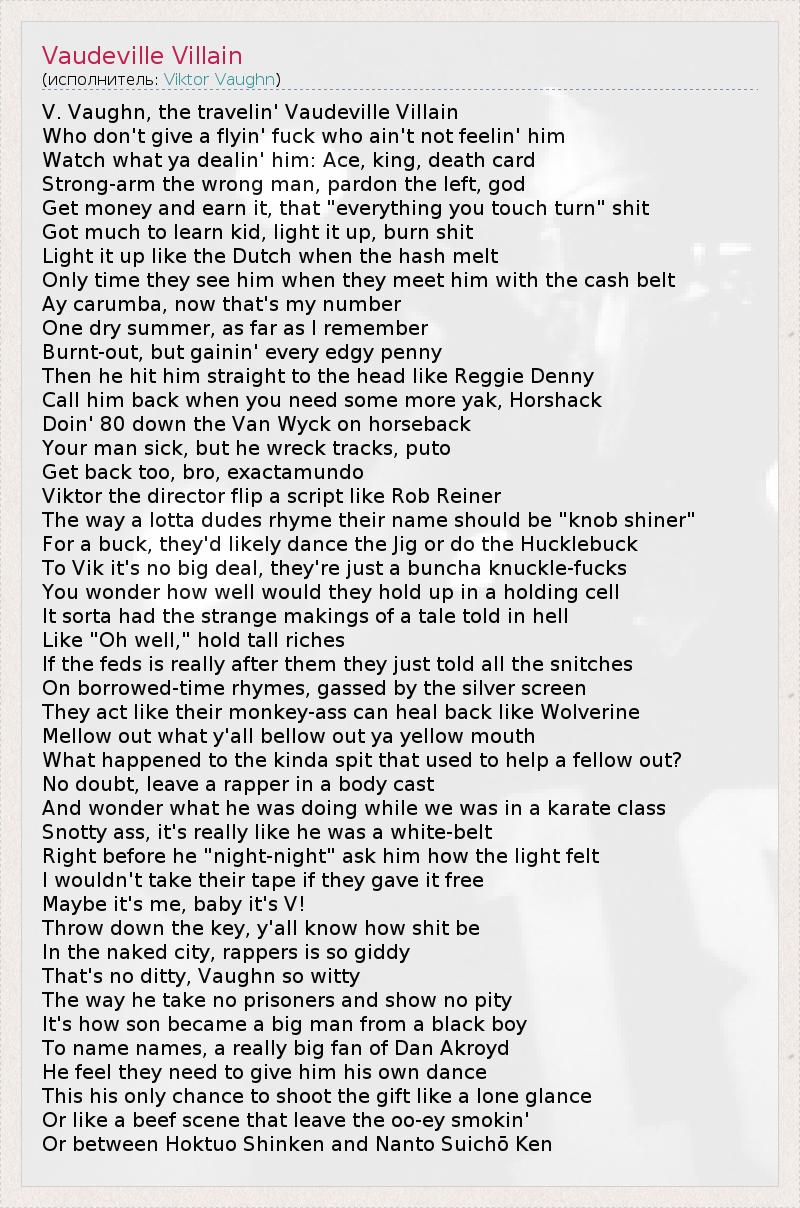 А как ты думаешь, о чем песня "Vaudeville Villain" ?